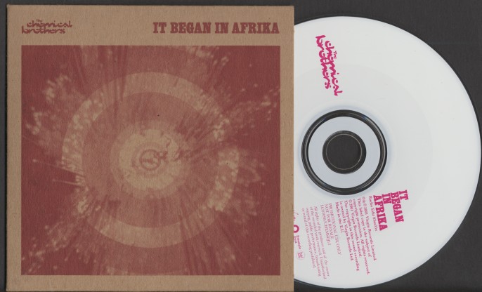 | UK/Europe/US CD Freestyle Dust / Virgin Records (UK/Europe), CHEMSD 12 Astralwerks (US), ASW ???? 01 It Began In Afrika (Radio Edit) (3:35) 02 It Began in Afrika (8:39) 03 Hot Acid Rhythm 1 (5:04) Foreign CD Virgin Records (Foreign), CHEMSDE 12 01 It Began In Afrika (Radio Edit) ( 3:35) 02 Hot Acid Rhythm 1 ( 5:04) UK/Europe/US 12" Freestyle Dust / Virgin Records (UK/Europe), CHEMST 12 Astralwerks (US), ASW ???? A It Began in Afrika ( 8:39) B Hot Acid Rhythm 1 ( 5:04) UK/Europe Cassette Virgin Records (UK/Europe), CHEMSC 12 Tracklisting Unknown UK/Europe Promo CD Freestyle Dust / Virgin Records (UK/Europe), CHEMSDJ 12 01 It Began In Afrika (Radio Edit) ( 3:35) UK/Europe Promo 12" Freestyle Dust / Virgin Records (UK/Europe), CHEMSTXDJ 12 A It Began in Afrika ( 8:39) B Hot Acid Rhythm 1 ( 5:04) UK/Europe Promo 12" Virgin Records (UK/Europe), CHEMTDJ 12 Tracklisting Unknown See also "Electronic Battle Weapon 5". |