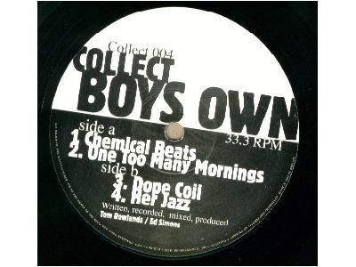 | UK 12" Junior's Boys Own (UK), Collect 004 01 Chemical Beats (5:41) 02 One Too Many Mornings (4:17) 03 Dope Coil (5:05) 04 Her Jazz (8:40) |
